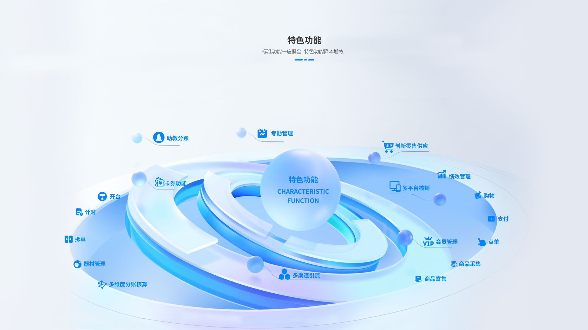 功能强大,操作简单,助教分账、管理、开台、计时、拆单、支付、点单、购物、绩效管理、商品采集、商品寄售、多维度分账核算、多平台核销等功能一应俱全,随心使用,提升门店管理水平。